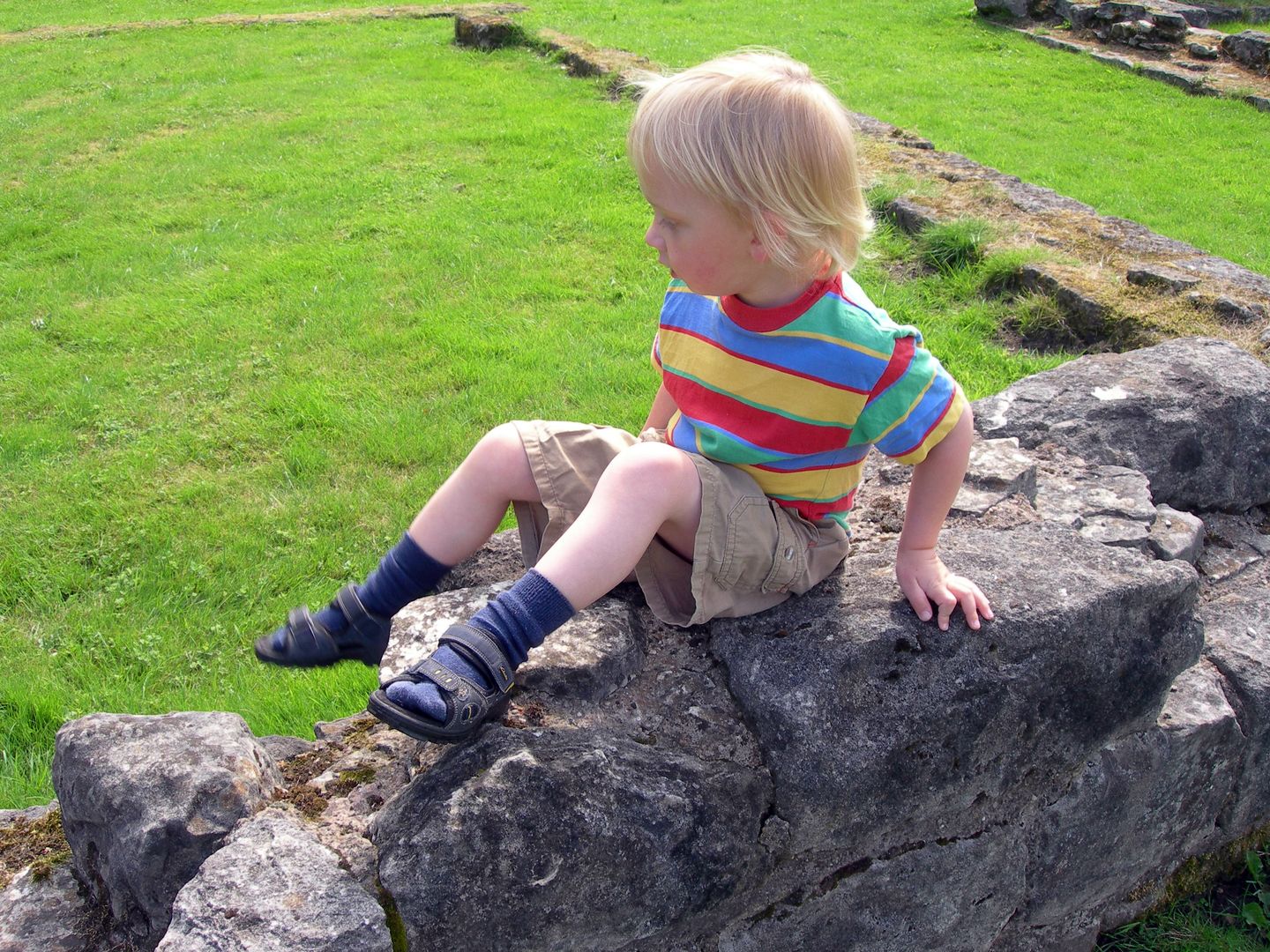 Today we went to Roche Abbey. We played hide and seek. Admired the spots on a ladybird. Threw Pooh sticks. And waited for them to reappear. … and Small has learnt to play with the stream… 🙂