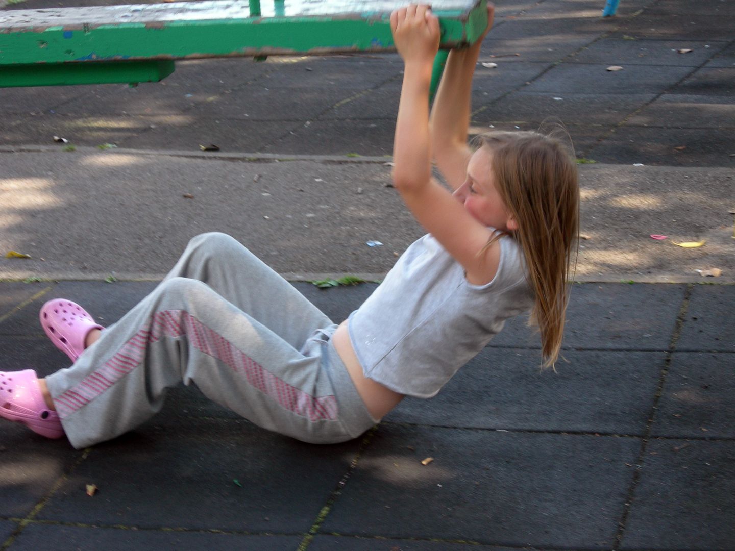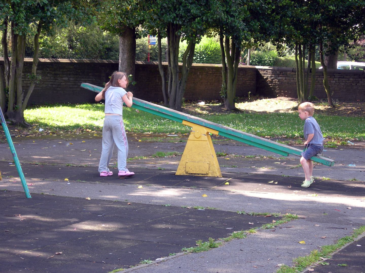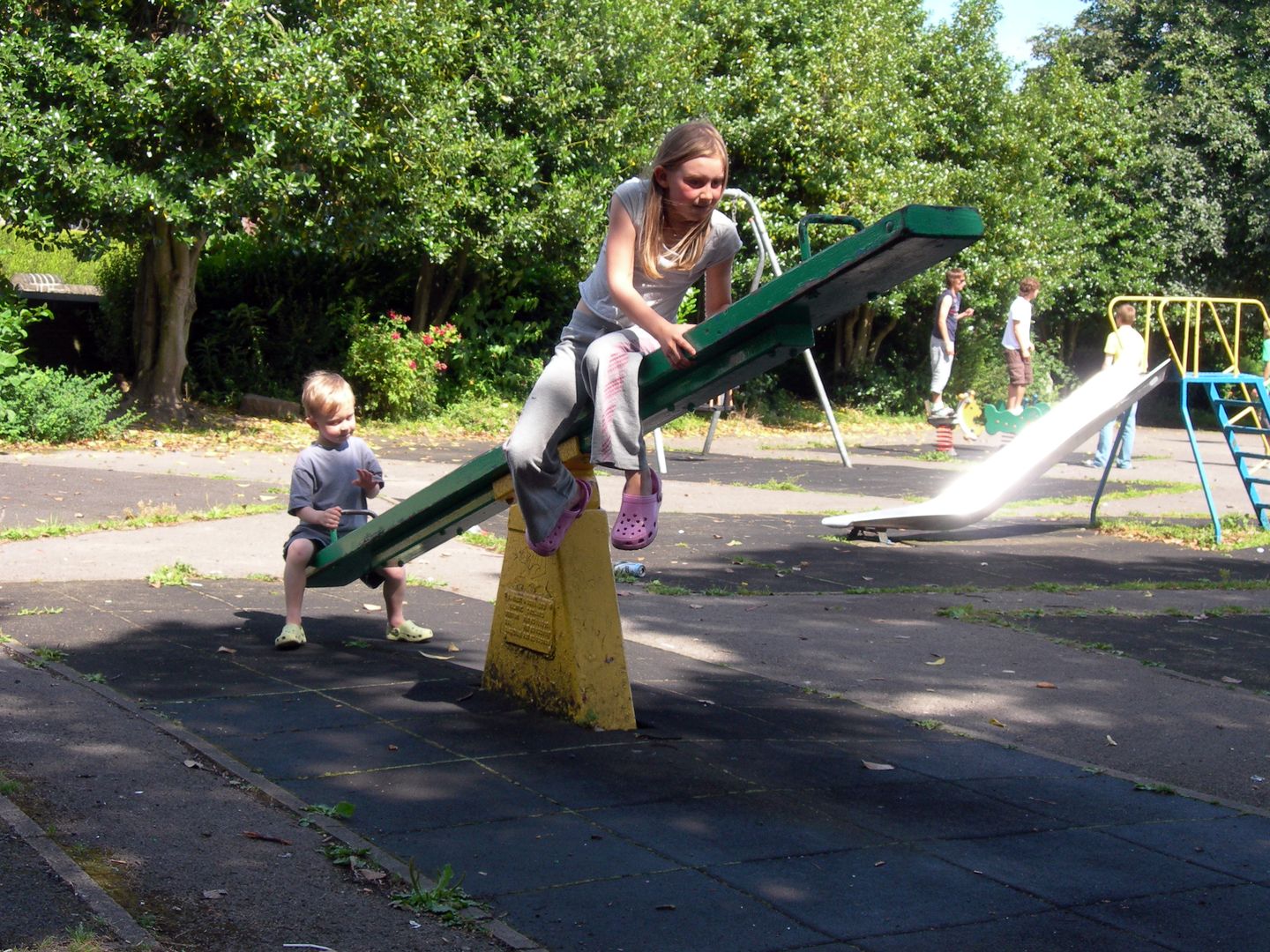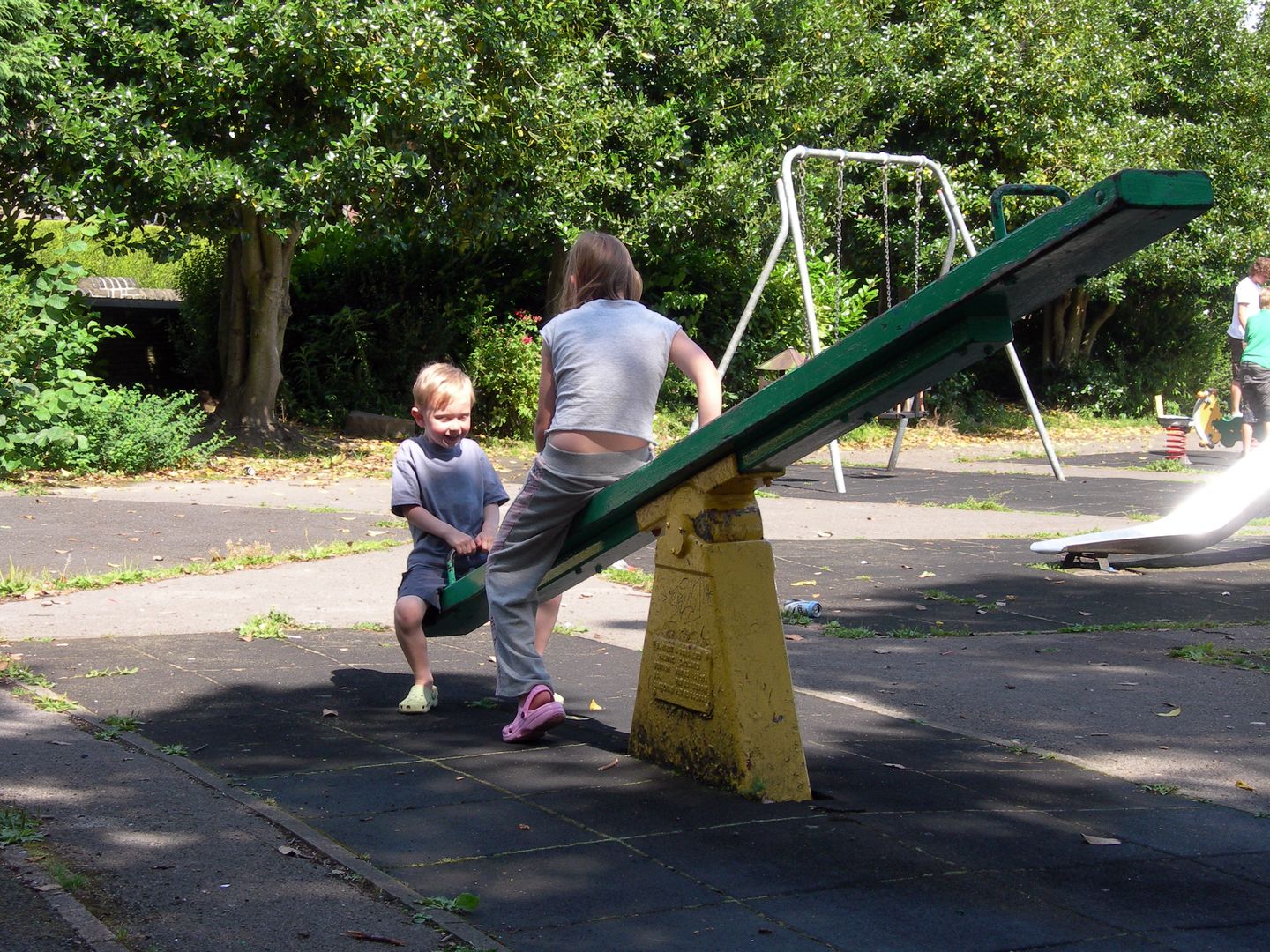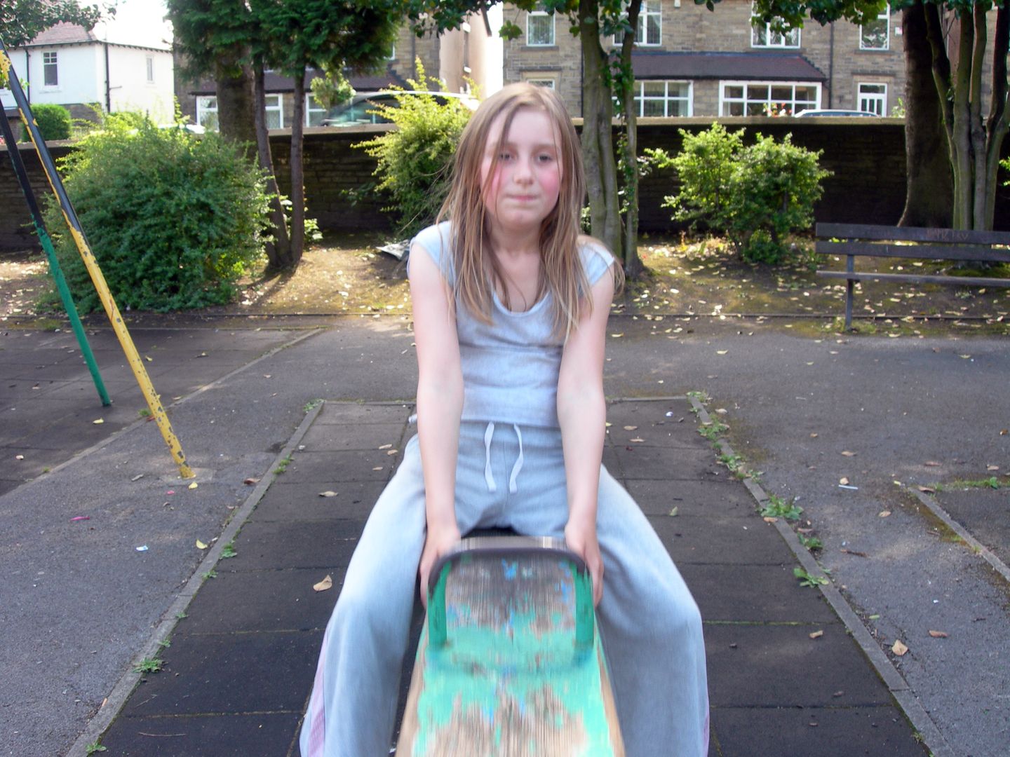 We are fortunate that we live in between two parks, the larger, Wellholme Park is very crowded during school hols, but is lovely. Today we went to the other park for the first time. When we arrived, there were a bunch of young adolescents cluttering the swings, but they shambled off at the sight of a grown up, and much of the time we had the place more or less to ourselves.